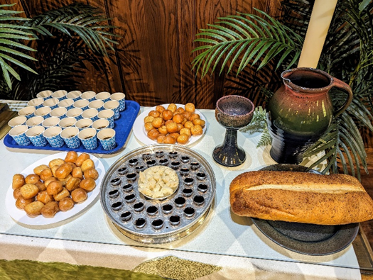 unusual and untraditional Communion elements of doughnut holes and coffee. It